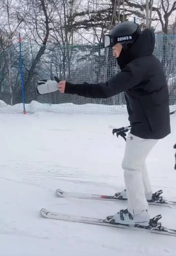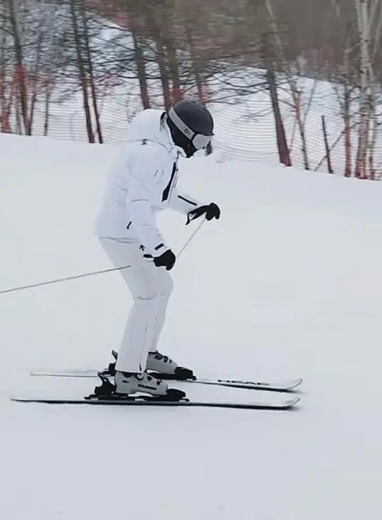 视频中,何捷穿着一身白色的滑雪服,非常帅气地从远处滑来,滑得潇洒自如,非常丝滑,何捷不愧是当过兵的,核心力量与运动细胞太强了,如果不是张馨予告知才滑了7天,还以为何捷以前就会滑雪,真是优秀的人做什么都优秀,何捷滑雪太帅了。