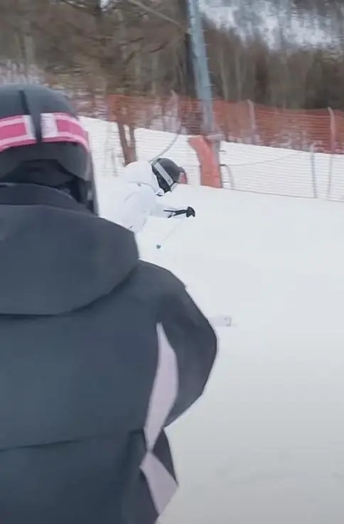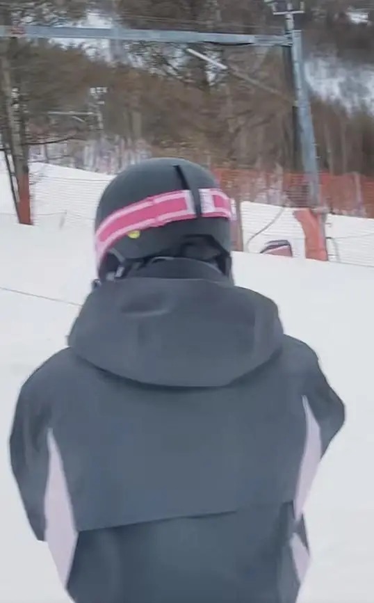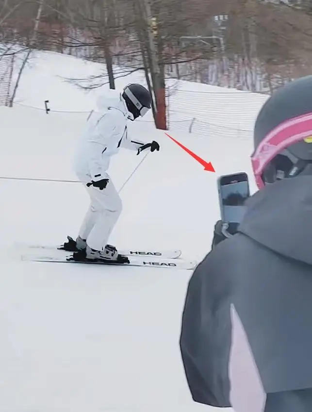 张馨予出现在视频中大概只有1秒,就一晃而过,然而她竟然拿着手机偷拍老公,看来也是被何捷帅气的滑雪动作给迷倒了。